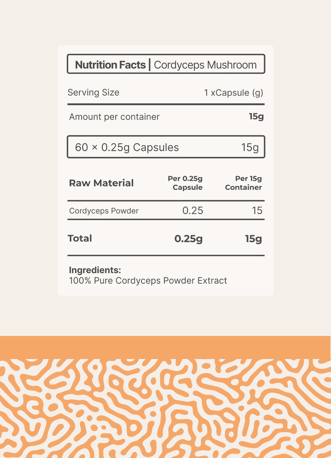 Our premium Cordyceps is sustainably sourced and free from artificial additives, ensuring maximum potency and purity. Whether you’re looking to boost your workout performance, strengthen your immune system, or simply maintain a balanced state of well-being, Cordyceps is a natural powerhouse for vitality.