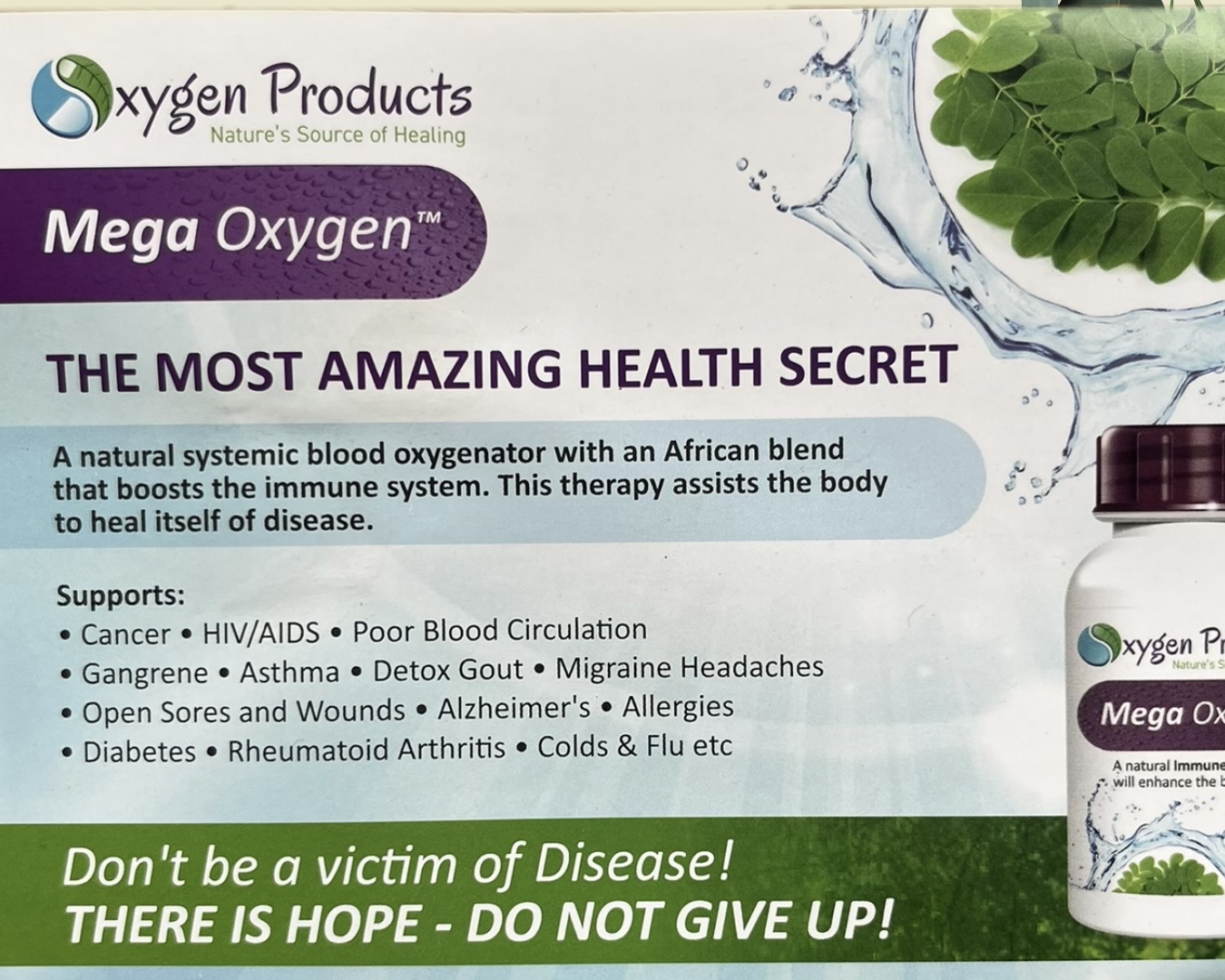 Don’t be a victim of disease—there is hope! Support your body with Mega Oxygen.